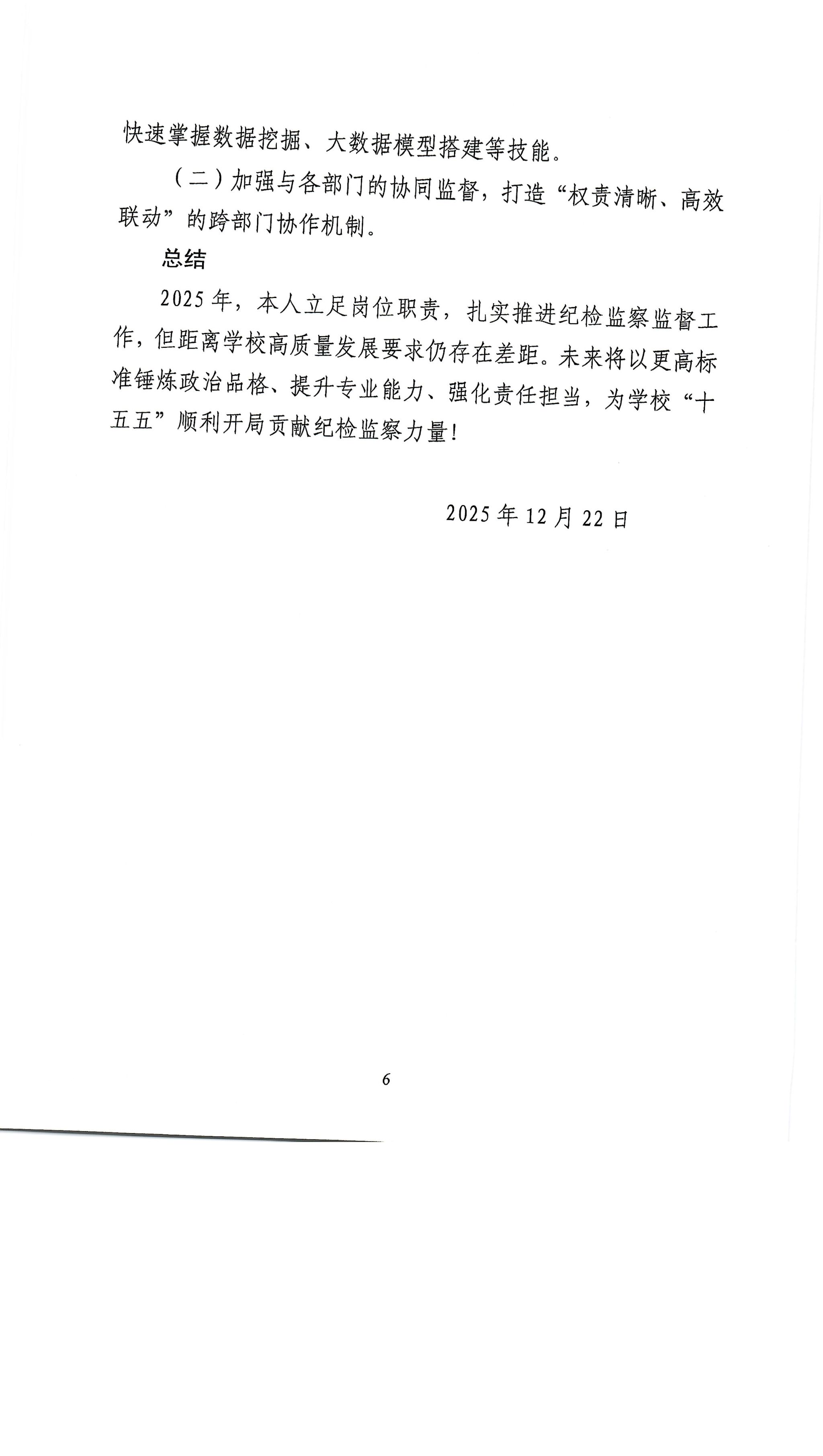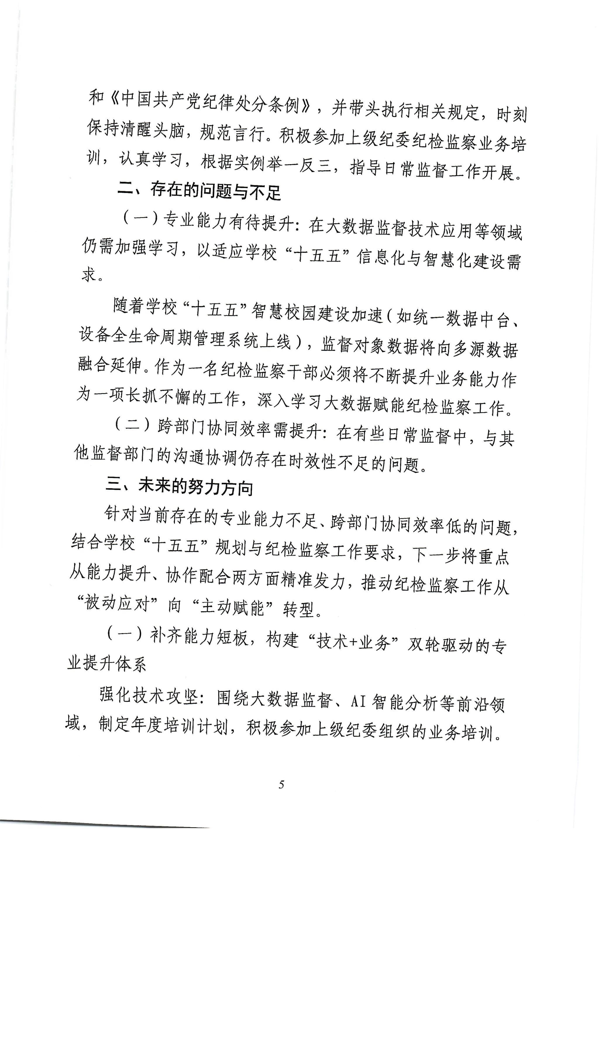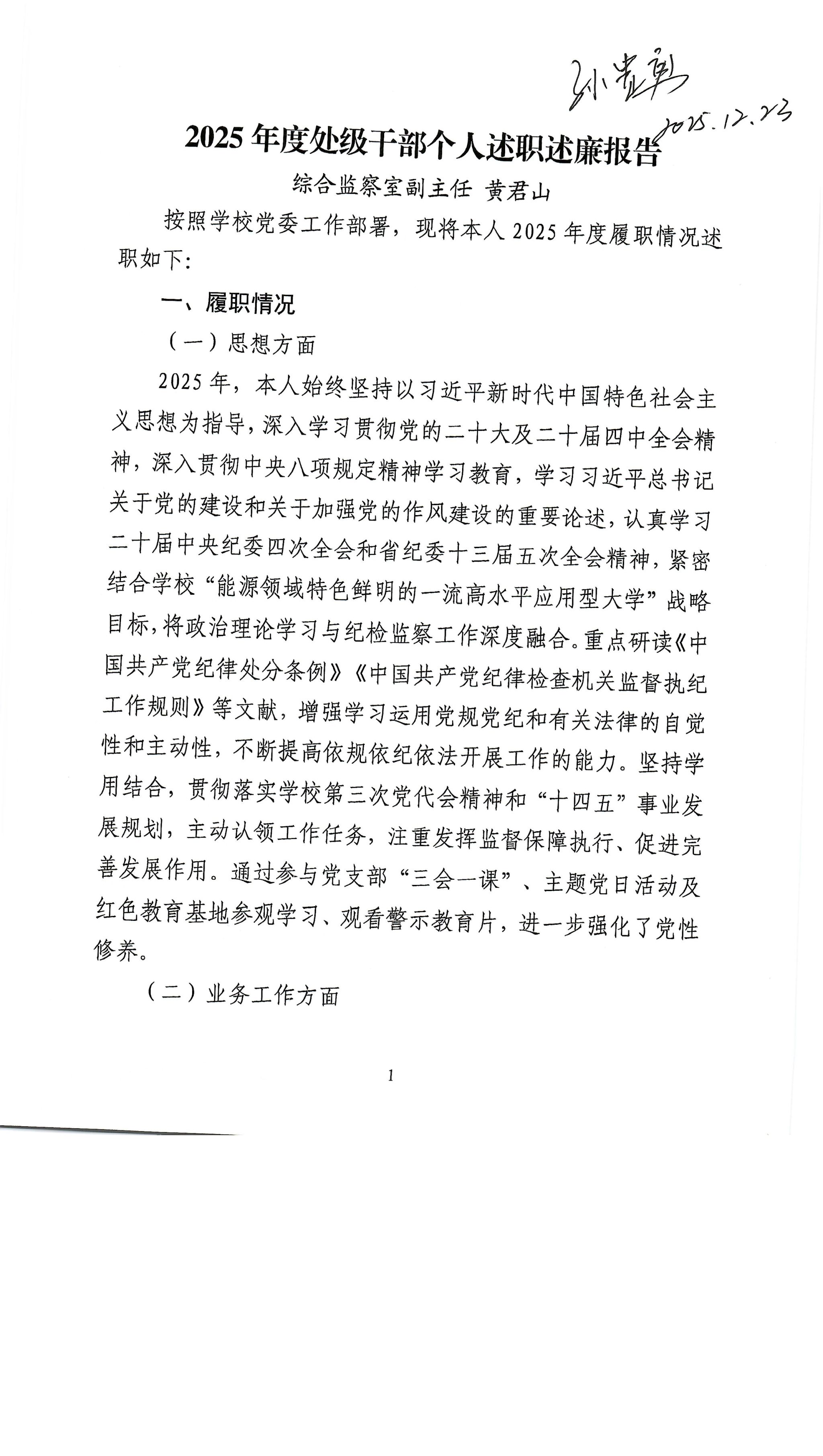 学校纪委综合监察室副主任黄君山2025年述职述廉报告